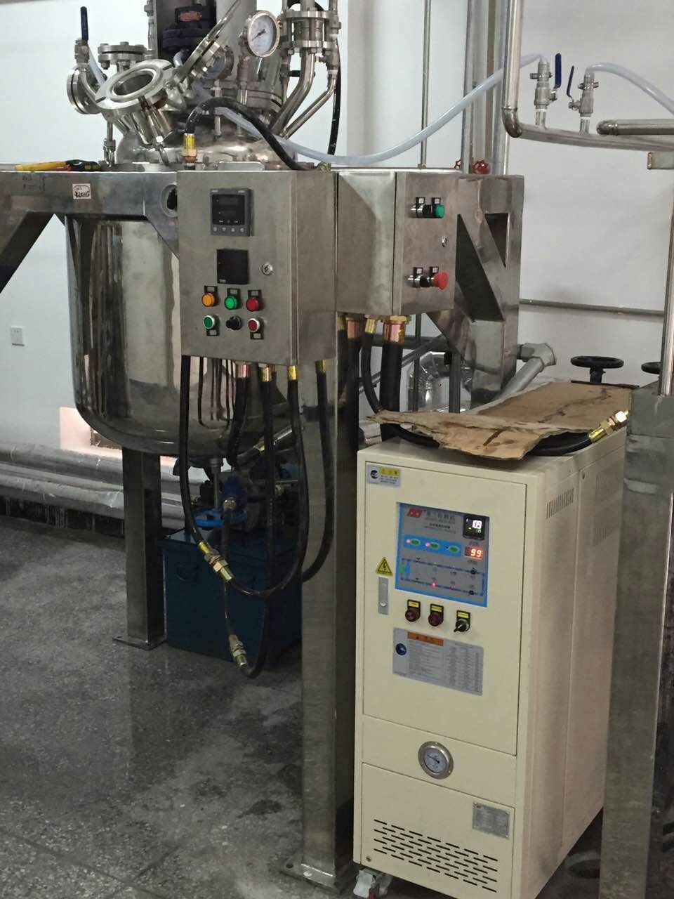 我公司研發的反應釜夾套控溫油溫機,可使用在反應釜溫控上。導熱油在加熱過程中,起到媒介的作用,利用電加熱,將導熱油加熱到指定的溫度,通過循環油泵打入需要加熱的主設備內,起到加熱的目的。我公司從事溫控行業多年,對諸多行業的溫控方面有一定的經驗,可根據不同需要加熱的主設備,設計并制造專業的溫控設備。在傳統意義上,油溫機已經慢慢取代了導熱油鍋爐,及蒸汽鍋爐,后者不僅不夠安全,而且控溫的精度也不夠,耗能大。我公司生產的油溫機具體安全可靠、操控簡便、控溫精度高等諸多優點;