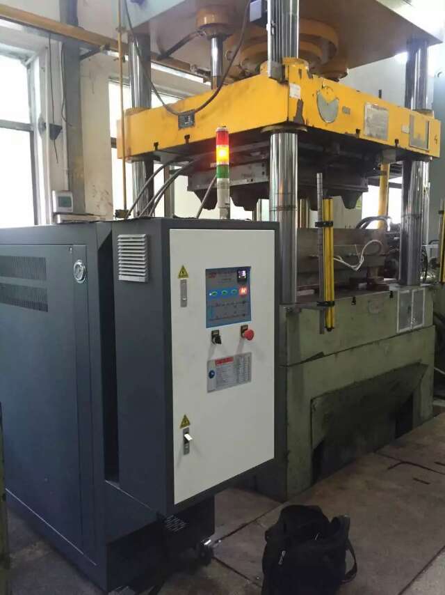 汽車部件熱壓成型油溫機_頂棚熱壓成型模具控溫油溫機是一種新型、安全、高效節能,低壓(常壓下或較低壓力)并能提供高溫熱能的特種工業爐,以導熱油為熱載體,通過熱油泵使導熱油循環,將導熱油熱量傳遞給用熱設備。導熱油電加熱爐由電加熱器、電器控制部分、熱油泵、膨脹槽等組合成一起,用戶只僅需接入電源、導熱油爐的進出口管道即可使用。油溫機是一種整機加熱設備。